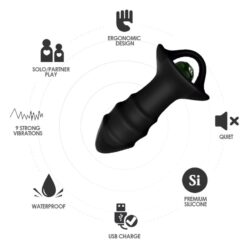 Fabricado con materiales de alta calidad como silicona premium y ABS, garantiza una sensación suave al tacto y una durabilidad excepcional. Con 9 modos de vibración, puedes experimentar una variedad de sensaciones, desde suaves pulsaciones hasta vibraciones intensas, para satisfacer tus deseos más profundos. Además, su diseño ergonómico y la forma del plug anal aseguran una inserción cómoda y segura.
