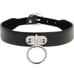 Este collar fetiche es una pieza exclusiva de cuero vegano para complementar como accesorio a tu vestuario.