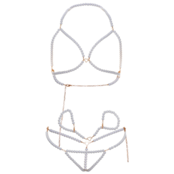Mímate con nuestro seductor conjunto de lencería de 3 piezas confeccionado en perlas de imitación, que presenta un sujetador de copa abierta y un cordón con cierres de cadena ajustables. El conjunto está adornado con sensuales detalles en forma de corazón, que añaden un toque de romance a tus momentos íntimos. Para completar la emoción, se incluyen muñequeras a juego. Este conjunto es perfecto para quienes buscan estilo y emoción. Siéntete segura e irresistible con esta exquisita lencería.