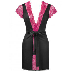 Si aún no te has convencido de usar negligés, ya es hora. Este de la colección Kumiko será un acierto y seguro que te enamorarás de este albornoz. Todo esto es posible gracias a la combinación única de elegante encaje y delicada microfibra. Además, el set incluye calzoncillos. La bata presentada es hermosa y el color negro y burdeos combina perfectamente con el borde de encaje en los bordes. Una ventaja adicional es el efecto de cintura acentuada gracias al lazo de raso en la cintura. El producto está fabricado de un material delicado y agradable. 90% poliamida, 10% elastano.