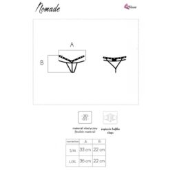 Las braguitas de encaje negro son de buen gusto y nunca pasarán de moda. Los tangas Nomade tienen cintas decorativas adicionales que pueden estimular la imaginación y enfatizar la belleza del cuerpo. Fueron colocados tanto en la parte delantera como en la trasera. Los tangas Nomade son perfectos para todo tipo de ocasiones especiales y para el día a día.