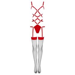 Un conjunto único y sensual para mujeres enérgicas y valientes. Intrigante, sorprendente, misterioso, exactamente lo que debe ser un conjunto de lencería erótica. A veces tiene que cubrir algo, a veces revelar más, y a veces… ser original y un poco loco. Por qué? ¡Porque en el dormitorio no hay lugar para el aburrimiento! El conjunto Thiara Red es una combinación de esta locura con estilo y elegancia. Sin duda sorprende por su diseño original y por el hecho de que se ve completamente diferente por detrás que por delante.