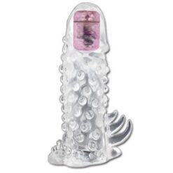 Aumente su tamaño y rendimiento para disfrutar de una intensa diversión en el dormitorio con esta funda para pene vibratoria. Esta funda está diseñada para ajustarse alrededor de su erección, brindándole más longitud y circunferencia para jugar, brindándole a su erección más circunferencia, texturas lujosas, una pulgada adicional de longitud y un motor vibratorio justo en la punta.